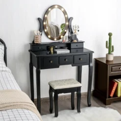 Costway Vanity Table Table 10 Dimmable Bulbs Black White Brown