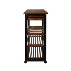 19″ Solid Wood Rolling Kitchen Cart With Wine Rack And Drawer Dark Brown – Flora Home