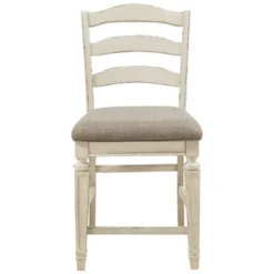 Set Of 2 Fabric Upholstered Counter Height Barstools With Ladder Back White/Brown – Benzara