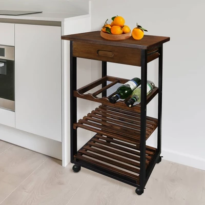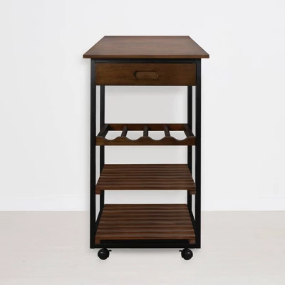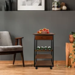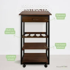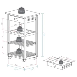 Be the first to review “19″ Solid Wood Rolling Kitchen Cart With Wine Rack And Drawer Dark Brown – Flora Home” Cancel reply