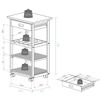 | Features | Wine Storage, Casters/Wheels, 2 Shelves |