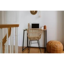 - SET OF TWO: These rattan chairs are sold in sets of two. They’ll look amazing around your dinner table, and they can also be used as additional seating when you have guests over.HAND WOVEN: The seat of each chair is handmade, for a unique bohemian look. Paired with the hairpin metal legs, they form a sublime whole!COMFORT ASSURED: One thing is sure, you’ll be sitting comfortably in these chairs. The seat lets you keep your back straight, while the armrests will let you relax a little. You also have enough space underneath to stretch and move your legs if you need to.STURDY, QUALITY LEGS: The metal legs of these chairs are very strong, so you get good stability when you sit on them. Each leg also has a rubber cap, to protect your floor from potential scratches.FREE SWATCH AVAILABLE: Contact our consumer service today at 1-800-290-0465 or send an email to [email protected] is required by 2 adults and tools are not included. If you have questions regarding this product or need assistance do not hesitate to contact South Shore Furniture 7 days support. You can reach customer support by phone at 1.800.290.0465 or you may chat with an agent live at: www.southshorefurniture.com