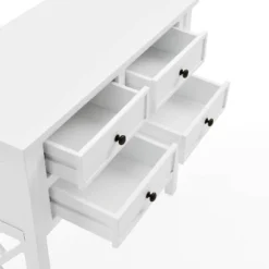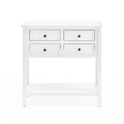 The 32″ Middlebury Wood Console Table with 4 Drawers in White from Alaterre Furniture is a great addition to your living space. The crisp white finish will freshen up your home and the open sides give an airy feel to the piece. The four drawers are perfect for keeping items neat and tidy. Use to showcase your decorations and keep remotes organized in one space. The lower shelf offers additional space for storage or decorations.