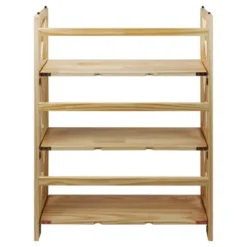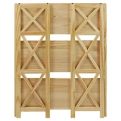 Sturdy and stackable, the X-Design 3-Shelf Folding Bookcase is ideal for any storage. 3 shelves to maximize storage and decorative displays. Stackable design allows your storage and home design to grow when you need them to. Effortless foldable engineering means you can transport or store with ease. Constructed from solid wood for lasting beauty. No assembly required. Product dim (expended): 27.5″W x 11.5″D x 38″H. Folded dim: 27.5″W x 2.5″D x 38″H.