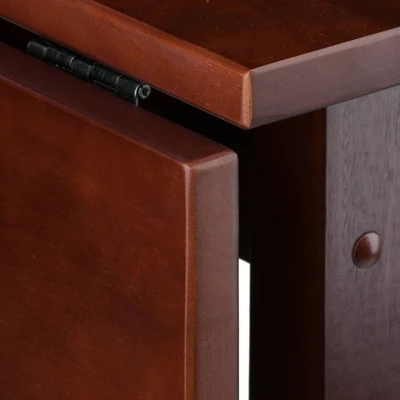 The set comes with a high table and two saddle seat stools. The table is versatile that is space saving and functional. A leaf is folded down for space saving and when in use lift up the leaf for an extension of top surface. Top table area when leaf is up 39.37″W x 30″D x 35.43″H. Table when leaf is folded 39.37″W x 20.70″D x 35.43″H. Drop leaf 39.37″W x 10.31″D. Saddle Seat Counter Stool is 24″ Seat height. Constructed in solid wood in warm Antique Walnut Finish. Ready to Assemble.