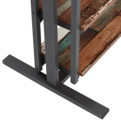 Add style and function to small spaces, workrooms and more with this convertible bookshelf table. In bookshelf mode you get 5 surface shelves that can be used for display or storage. Loosen side locks and swivel the unit down to convert it into a table for dining or work. In table mode the design seats 6 to 8 comfortably. Features faux walnut wood shelves with sturdy hot-rolled steel legs that have a powdercoated finish.