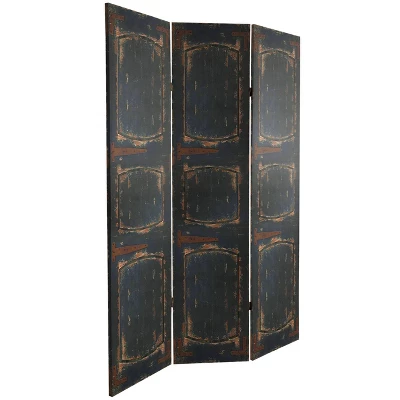 6" Double Sided Door Canvas Room Divider Black - Oriental Furniture