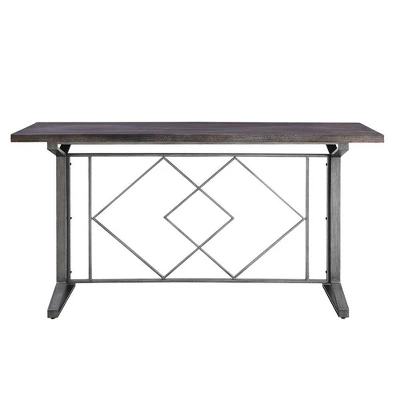 Transform a boring traditional dining room into an industrial home bar that allows your friends to eat and drink to their heart’s content. The Evangeline Counter Height Table employs a sense of industrial rawness in every detail, including distressed textures, metal structure, minimalistic design. The rectangular wooden tabletop is finished in a salvaged brown to form a weathered surface.