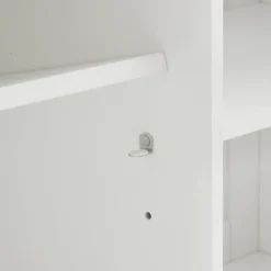 - The island has an adjustable shelf inside each cabinet with a 15lb weight limit per shelf