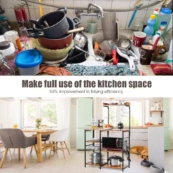 This 4-tier Kitchen Baker’s Rack is a convenient way to add additional space and organization to your kitchen. Vegetables will remain fresh and clean, and your cookware and other groceries will be neatly organized. And the kitchen will be neater and have more free space. And the MDF with fine process technology is ideal to place in the kitchen, more weather-resistant and not deform. The elegant and well-crafted appearance will add the distinctive flavor, elegance and balance to your decor and can harmonize with any other furniture in any room.