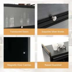 Organize your kitchen with style! Our rolling microwave stand is the ultimate storage solution. With 5 tiers and semi-translucent doors, keep dust at bay and display your kitchen appliances, tableware, snacks, and more! Besides, the door can be retracted to save space when opened, and it can be secured with magnetic door catches when closed. Plus, 4 universal casters provide easy mobility in any direction, with 2 brakes for maximum stability. Made with high-quality metal panels and waterproof PC material, this metal storage rack with sturdy construction can serve for long! We even provide 2 anti-tipping kits to anchor the cabinet for extra stability and safety. Upgrade your kitchen storage today!