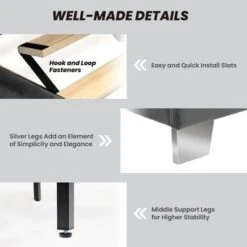 - Solid Slats Support Built to Last: Made of sturdy wooden slats, the platform bed features good bending resistance and excellent durability. Besides, there are intermediate metal legs with adjustable foot pads for higher stability, ensuring great weight capacity up to 1000 lbs.