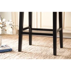 Take your bar or kitchen’s style to new heights with the Dakota Bonded Leather Saddle Bar Stool. This contemporary bar stool is constructed of sturdy kiln-dried hardwood with a rich espresso finish. The fashionable saddle style seat sports a dense foam cushion top to make it a comfortable way to cozy up to the counter. Silver nailhead trim creates a chic border around the bonded leather upholstery in your choice of rich colors. These details stand out, and make this colorful leather bar stool is a great way to add a subtle pop of rich color and style to your space.