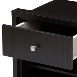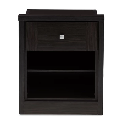 Unique and modern, the Danette nightstand is a blend of practicality and style. The modern and contemporary-inspired design features a framed façade, giving a sbarrier to the top of the nightstand. The Danette is finished in a wenge , with a silver-finished square drawer knob. The nightstand features one top drawer and two open shelf spaces underneath to help keep your bedside organized and tidy. Versatile in it’s simplicity, the Danette will look right at home in your bedroom or guest room. Made in Malaysia, the nightstand requires assembly. Dimensions: 20.28″ High x 16.93″ Wide x 15.75″ Deep