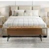 - Crafted from heavy gauge tubular steel, MDF, and 57/18/15/10 rayon/polyester/cotton/linen blend fabric