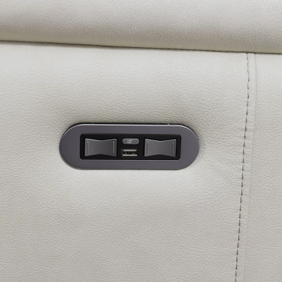 Contemporary styling in a modern ivory leather application, the Duval power sofa features both a power footrest and articulating power headrest for the ultimate in comfortable seating. A horizontal channeled back, and top-grain leather adds a luxurious touch that is durable, comfortable and beautiful.