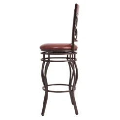 Add a stylish touch to your home bar or kitchen counters with the Elama Vintage Faux Leather Bar Stool in Green with Black Base. No handles ensure these stools fit easily side by side without the bulkiness. Designed with a distressed faux leather cushion with matte black base for a vintage look. Features a swivel base and foot rest for convenient mobility and added support. Assembly is made easy with the included tools. Crafted from quality faux leather and sturdy metal for a strong and long-lasting design.
