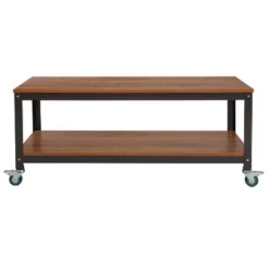 Emma And Oliver TV Stand In Brown Oak Wood Grain Finish With Metal Wheels