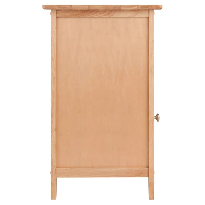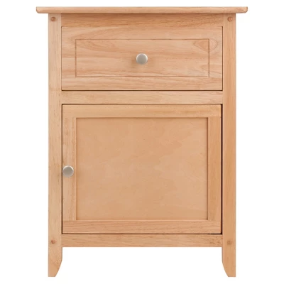 Complement your bedroom furniture with this Natural Eugene Nightstand from Winsome. This sturdy wood nightstand features a single drawer and a spacious lower cabinet. The natural wood finish works well alongside sofas, reading chairs and beds, and easily blends in with many decor styles. The large drawer at the top can be used to stow anything from bedtime essentials to handy knick-knacks, while the lower cabinet doubles as a storage space for books, magazines and other daily utility items. Plus, the elegantly beveled top offers good space to display your favorite collectibles.