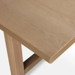 - The angular, solid wood trestle base adds architectural interest with contemporary details.