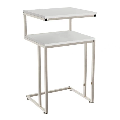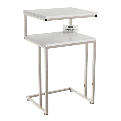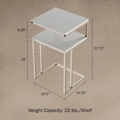 Organize your living room with this Two-Tier End Table from Hastings Home. This C-shaped side table is designed to sit next to your sofa, offering attractive and convenient storage for books, magazines, electronics, and other day-to-day items. The compact, space-saving design means it works just as well for storage in a small dorm as in a larger living room.