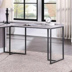 Marga L-Shape Desk With USB Port And Power Plug-In Gray – MiBasics