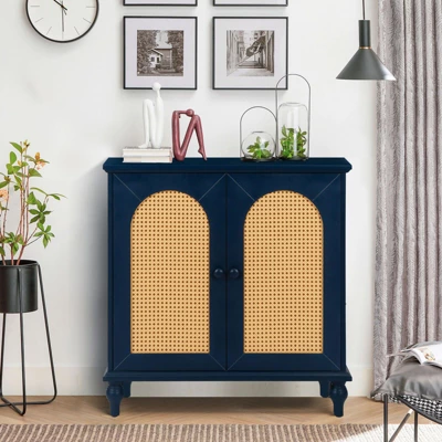 Looking for a stylish and functional storage solution for your home? Look no further than this contemporary Storage Cabinet with Rattan Doors. With its streamlined appearance and sleek design, this cabinet is the perfect choice for keeping clutter under control in any room of your home.Crafted from a combination of high-quality manufactured wood and equip with stable kirsite material hands, this cabinet is built to last and provides perfect stability and durability. The cabinet features four doors with beautiful rattan panels that open to reveal hidden storage areas, rattan design doors providing a perfect visual effect, adding a chic vibe to your home living space. with two shelves inside providing ample space for storing all of your daily essentials.But this cabinet isn’t just functional – it’s also a work of art. The rattan doors add a unique and natural texture to the piece, creating a warm and inviting feel in any room. And with its optional neutral hues, this stylish cabinet is ideal for blending with any home decor style, helping you to create functional storage in your living room, dining room, or bedroom.Overall, if you’re looking for a storage solution that combines style and functionality, this Storage Cabinet with Rattan Doors is the perfect choice for you.