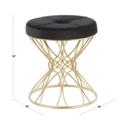 With a stunning silhouette, the Jasmine Vanity Stool by LumiSource offers style and practicality. Resting on a sleek and intricate gold metal base the button-tufted seat is upholstered in a stylish velvet. Use it for extra seating or as a stool for a vanity. Available in your choice of multiplecolor options, you can use this glamorous vanity stool in a variety of spaces.