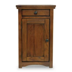 So much form and function in a beautifully compact piece of furniture. Richly crafted with a warm and rustic style, this chairside end table puts it all within reach, including a flip-up top panel revealing a power port—perfect for keeping your phone or laptop charged. Hidden twin cup holders and interior shelved storage are also a welcome surprise. Signature Design by Ashley is a registered trademark of Ashley Furniture Industries, Inc..