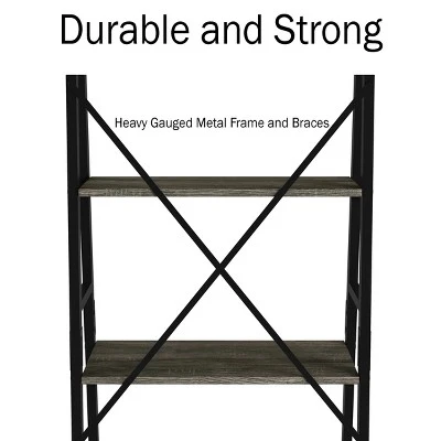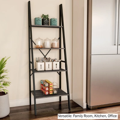 Incorporate a stylish yet functional piece into your modern home decor with this 4-Tier Industrial-Style Wood Bookshelf by Lavish Home. With clean lines that fit seamlessly in contemporary spaces, this ladder bookshelf provides the perfect platform for displaying books, knickknacks, framed photos, and figurines in your living room, bedroom, or kitchen. Construction from laminate wood with a chic gray faux woodgrain finish and a sleek black metal frame creates a neutral-hued bookshelf that pairs well with most palettes to turn your empty wall space into an attractive, purposeful focal point.