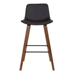 - Maddie Contemporary Barstool in Walnut Wood Finish with Black Powder Coated Finish and Brown Faux Leather