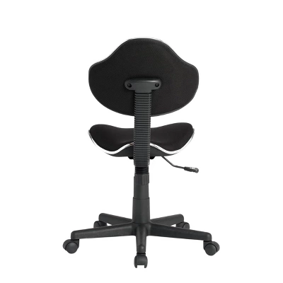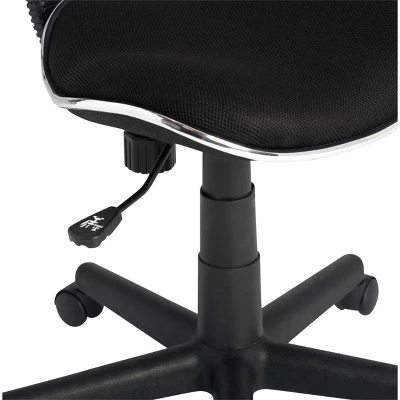 Bring simple seated comfort to any of your work spaces with this Black Task Chair from studio designs. This body-contouring desk chair is specifically designed to both fit and support your form in order to provide maximum levels of comfort during working days and nights. With an adjustable seat height and a wheeled base for mobility, this sleek cushioned desk chair will make a great addition to any modern work space.
