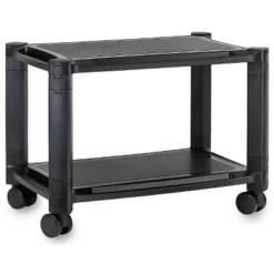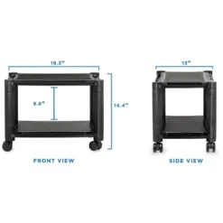 MI-7854 printer stand and rolling cart offers an ergonomic and space saving solution to printer and printer accessory storage. Its large platform of 19 by 13 inches is wide enough for most office printers and fax machines.The columns have stacking pieces that allows you to customize the height of the stand. You can place all the pieces in the column to a maximum height of 14.6 to store your printer, fax machines, toner, paper or other supplies, or remove the various height parts to lower it to your installation needs.This rolling cart has additional storage and organization features. The bottom shelf is ideal for printer supplies such as paper and toner. The grooves on the front and sides helps store small size office supplies, such as pens and paper clips. Cable management in the back organizes the cables to your printer. Four castors make moving the printer around easy.