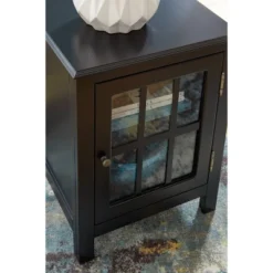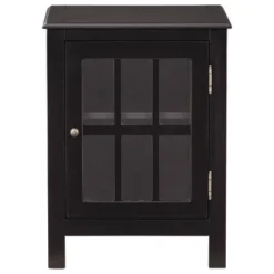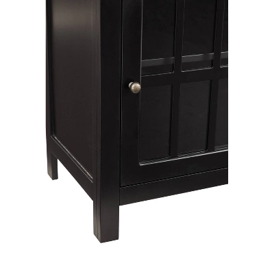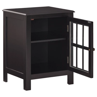 Casual style and function are made easy with this Opleton accent cabinet. This versatile storage solution in a black finish is a perfect place to stack bowls, plates and linens. The lattice door front with clear inset glass allows you to show off its contents, allowing for endless decorative possibilities.
