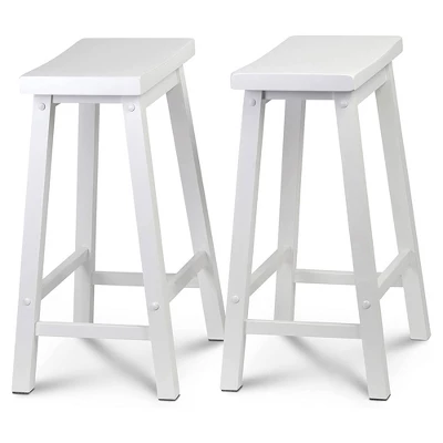 Spruce up your kitchen counter area with the 4-Pack PJ Wood Classic Saddle-Seat 24-Inch Tall Kitchen Counter Stools.These stools are ideal for all occasions, whether pairing with a small dining space that you already have, adding seating to your countertop, or casual entertaining space. Constructed from sturdy, durable wood, this set of 4 bar stools feature comfortable, rectangle, backless seats that stand 24 inches high with a classic and modern design that fits in with any existing decor. With 4 well-balanced, square legs, each stool can withstand up to 225 pounds. Good for eating, working, entertaining a few guests, or just sitting around, these stools are a great addition to that new bar, counter height table, or working area. Light assembly is required before you can use these bar stools, with all required hardware included.Make your kitchen or any dining space look great with the 4 packs of Classic Saddle-Seat 24-Inch Tall Kitchen Counter Stools from PJ Wood.