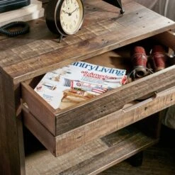 Update your bedroom furniture with the rich industrial style of the Renu Solid Wood Nightstand. This night stand is constructed with a solid wood frame, in a natural distressed finish, creating a robust rustic look. Distressed silver metal legs add a sturdy base that complements the design, while a single drawer with metal glides and lower shelf provide plenty of space for your essentials. Showcasing a simple design, this industrial style nightstand provides additional functionality and a farmhouse charm to your bedroom decor. Leg assembly is required.