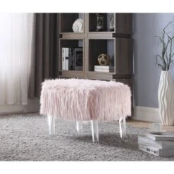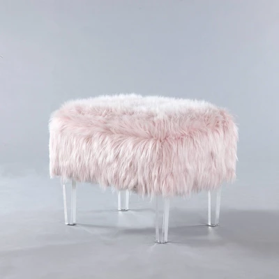 Plush faux fur combined with acrylic legs make this a great decor statement piece for any room in the house from living room to entryway and beyond.