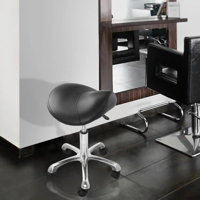 This Saloniture Professional Ergonomic Saddle Stool is ideal for home use and workplaces such as spas, salons, labs, clinics, doctors, massage therapy, dental and other medical offices, etc. Our professional ergonomic saddle stool keeps your spine properly aligned, providing extra comfort, and reducing painful pressure on your back. Eco-friendly, high-density foam provides premium durability and comfort, especially when used for prolonged sitting sessions. Crafted from premium-grade materials, our professional saddle stool features a heavy-duty metal base to accommodate a weight capacity up to 350 lbs. With a convenient 360-degree swivel, the hydraulic lift cylinder handles increased weight support and provides safe long-term use. The easy access angled lever allows for convenient height adjustment. The wheelbase features five non-slip, non-marring casters, for zero-barrier rolling on all types of even surfaces. Dimensions: Seat Measurements: 15-1/2″ wide (side to side at widest point), 8″ wide (side to side at narrowest point) x 14-1/2″ long (front to back) Stool Height: 18″ to 24″ (back of seat), 19-1/2″ to 25-1/2″ (front of seat) Leg Base: 19-1/2″ wide Caster Diameter: 2″ Stool Weight: 11 lbs. Recommended Weight Capacity: 350 lbs.