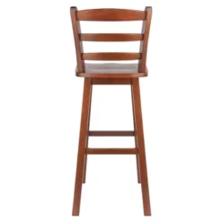 The Scalera Ladder Back Swivel Bar Stool by Winsome combines classic design with the allure and strength of Solid Wood. The slats on the ladder back are crafted with gentle arcs that add a graceful note to the stool’s traditional look while also providing comfortable back support. Sturdy, squared legs are reinforced with solid crossbars that also serve as footrests. And the seat swivels 360 degrees, perfect for finding just the right angle for casual dining or conversation with a friend. The wide seat has rounded edges and is contoured for comfort. Finished in a rich Walnut, the stool’s 16.3″” wide seat is ideal for adding a standard-sized seat cushion to coordinate with your home bar, den, or living room decor. Static weight capacity is 220 lbs. Also available in a counter height stool. Conveniently packed and shipped in 1 box, that includes the hardware needed for assembly.