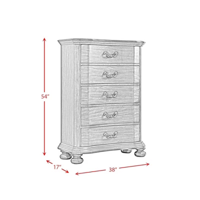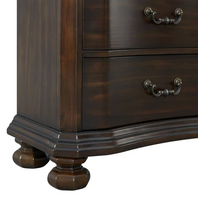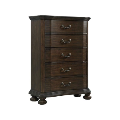 The Picket House Furnishings Serena 5-Drawer Chest is the missing piece in your bedroom! This traditional, vertical chest offers spacious storage in its five drawers. Black, felt-lining in the top drawer allows you to store away your more delicate belongings. The bottom drawer comes with a dust proofing layer to help protect your clothes. Raised drawer fronts with bevel edges add extra flair to this already stunning piece. Antique drawer pulls complement the rich, espresso finish beautifully. Add this chest to your home today for a look that will never go out of style!