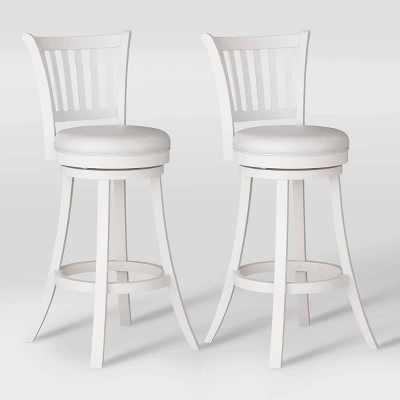 Pull up a seat to your at-home bar for a relaxing night with a glass of wine and a book. The Woodgrove swivel bar height barstool will have you seated in comfort from start to finish. The faux leather upholstered barstool has sleek lines and a supportive slatted back. The armless design allows for multiple seating options and the neutral colors make it a great fit in any kitchen.