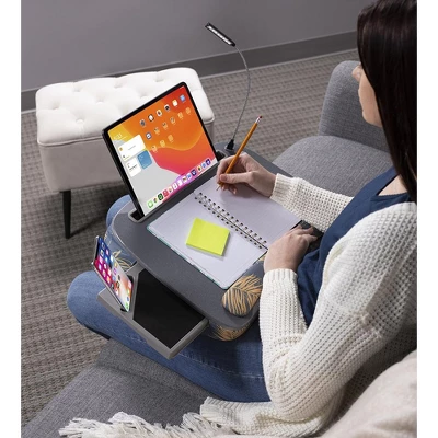 The Sofia + Sam Multi Media Memory Foam Lap Desk is the ultimate workstation for anyone using a laptop, tablet or smart phone. The lap desk allows you to work on a laptop or tablet, watch tv, write or read while staying alert to your phone for incoming calls and messages. Patent Pending