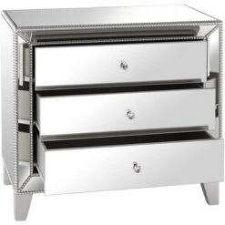 With three drawers for plenty of storage, the Liza mirrored accent table is a useful and versatile addition to any home. Stylish silver trim completes the chic look of this modern design.