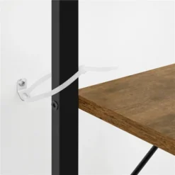 - Stylize your kitchen with this industrial rustic baker’s rack. Crafted of CARB Phase 2 engineered wood and a powder-coated metal frame, this sturdy kitchen rack features clean lines and an angular silhouette that lends a modern feel, while the weathered sand finish and matte black metal frame give this piece an on-trend mixed material look. Eight multi-sized open shelves handle everything from spice bottles to small/medium kitchen appliances, while the stemware holder, grid organizer, wire basket, wine rack and side hanging rods keep barware and kitchenware essentials nice and tidy.