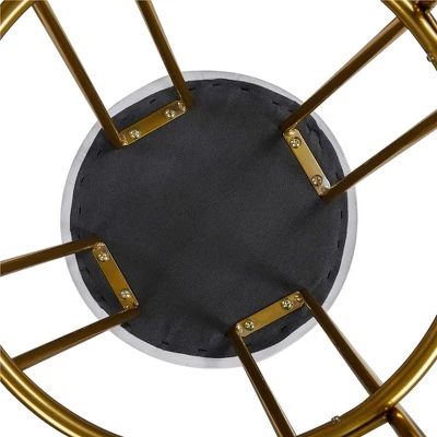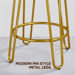 - This set of counter stools is made of luxurious velvet/boucle upholstery seats and golden metal legs, bringing a beautiful glam charm, at the same time, won’t compromise a comfortable sitting experience. The rounded seats are well padded with thick elastic foam, providing you with strong body support and a firm feeling. Featuring sturdy metal legs and a circular footrest, this kitchen stool could let you sit stably and securely. With the unique color scheme and stylish appearance, this pair of bar stools is ideal for the kitchen, home bar, dining room, restaurant and more.
